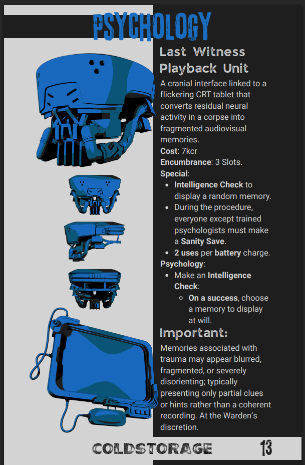 COLDSTORAGE - 101 items for Mothership TTRPG