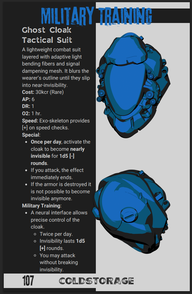 From black-market biotech and illegal comms warfare to alien exo-armor, surgical rigs, and reality-breaking tech, this book ties skills directly to gear, unlocking deeper, riskier, and far more creative play.